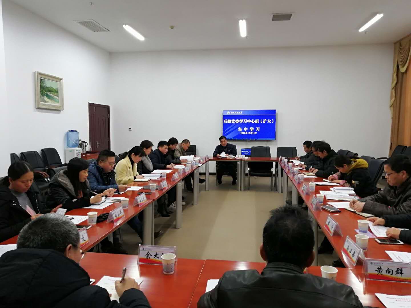12月11日下午,后勤党委在立德楼101会议室组织理论学习中心组(扩大)进行了“以本为本•立德树人”专题学习。学习会由后勤党委书记龚彩云主持,全处副科长及以上干部参加。